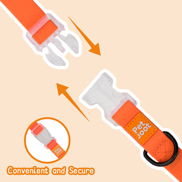 Our dog collar features a quick-release buckle, making it easy to attach and detach for added convenience. The buckle is crafted from eco-friendly plastic, ensuring environmentally conscious use.